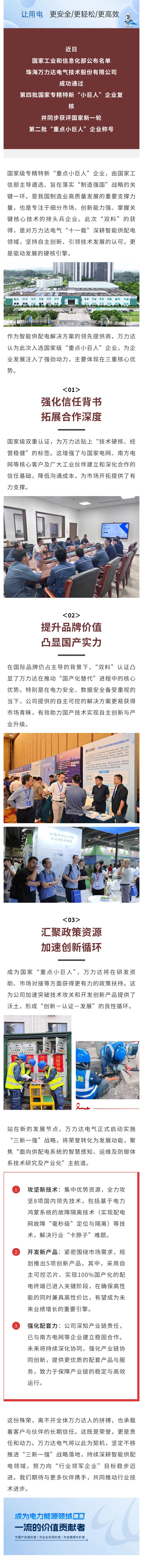 万力达电气获评国家级专精特新“重点小巨人”企业