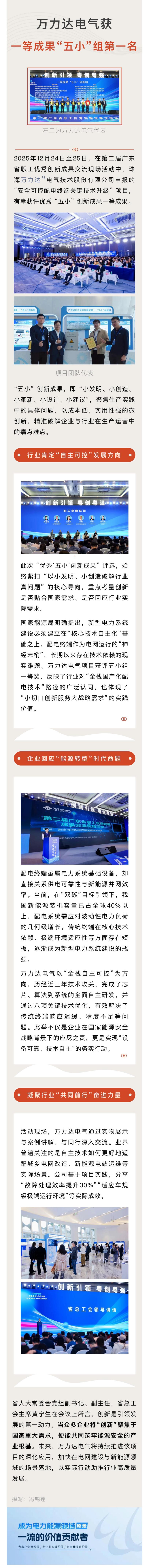 万力达电气获省级“五小”创新一等成果 ——以技术创新筑牢能源安全根基